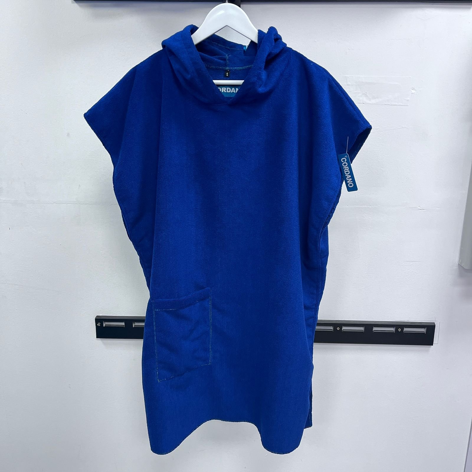 Microfibra absorbente, reemplaza la toalla, seca al contacto con el cuerpo y abrigan. COLOR AZUL ENTERO, con seguridad SECAN. Como salida de baño, playa, nado en piscina, deportes en mar, academias, surf, rehab, etc. CAMBIADOR CORDANO. Niños 5 a 7 años. Tiene 80 cm largo desde hombros. Unisex. Marca Peruana.