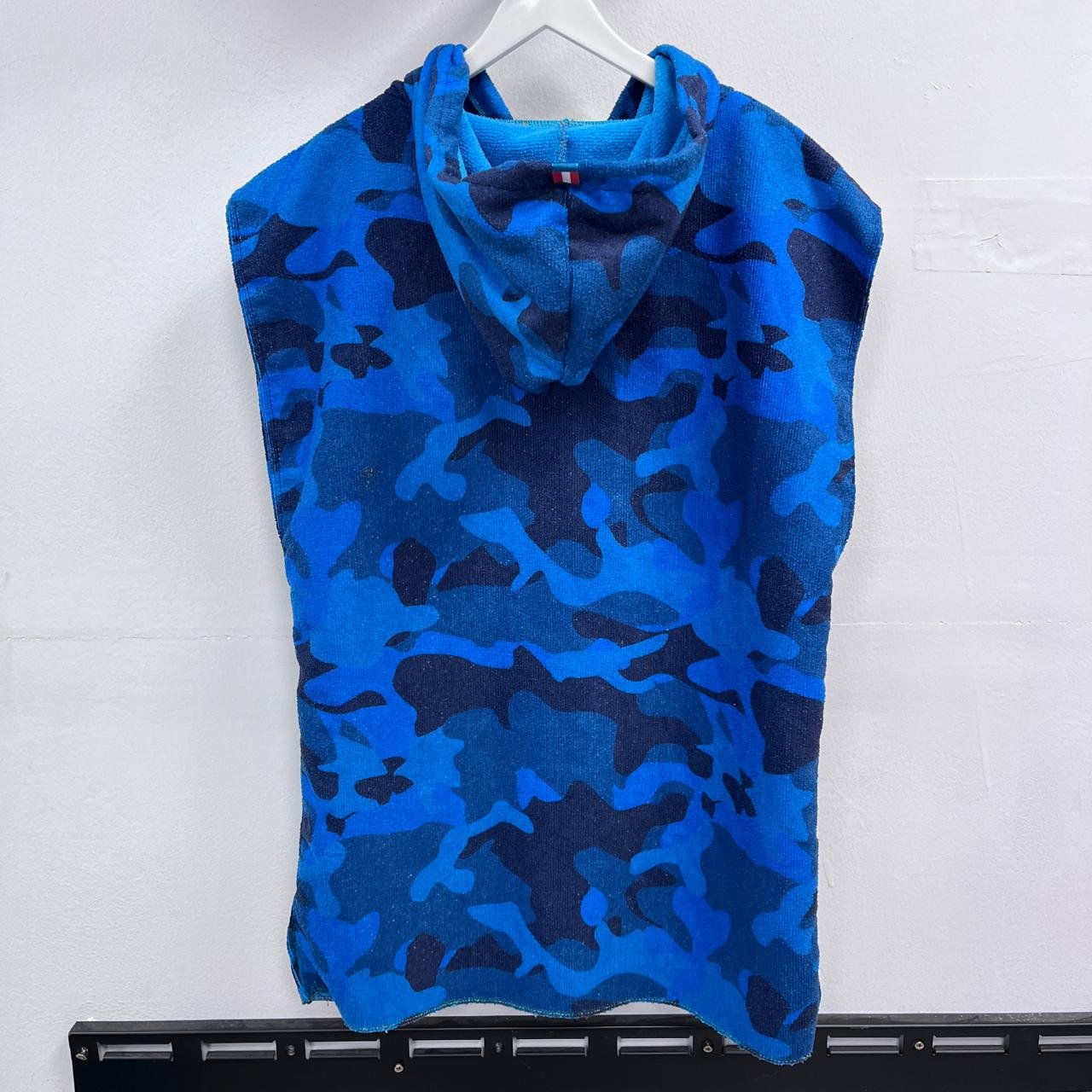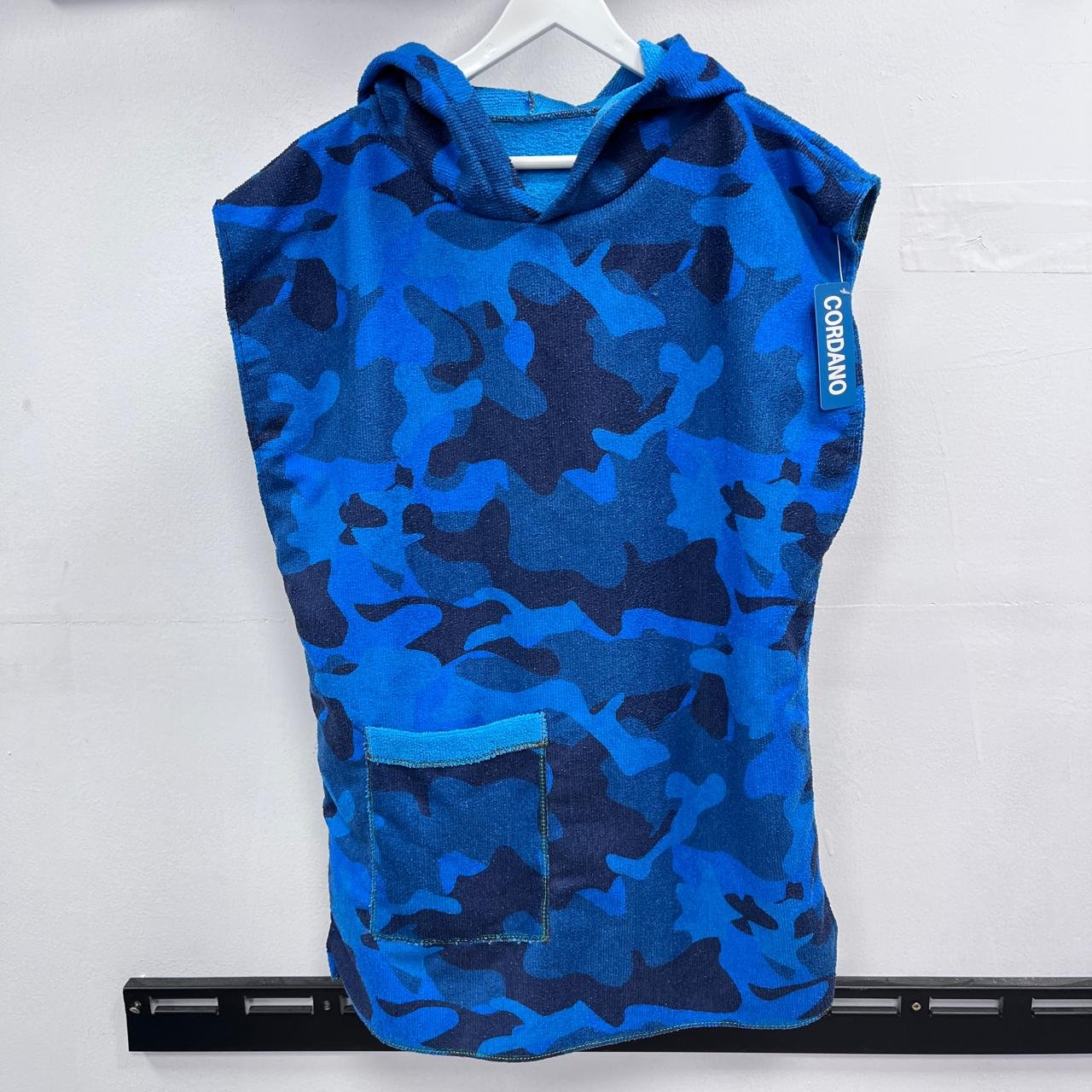 Microfibra absorbente, reemplaza la toalla, seca al contacto con el cuerpo y abrigan. CAMUFLADO AZUL, con seguridad SECAN. Como salida de baño, playa, nado en piscina, deportes en mar, academias, surf, rehab, etc. CAMBIADOR CORDANO. Niños 1 a 2 años. Tiene600 cm largo desde hombros. Unisex. Marca Peruana.