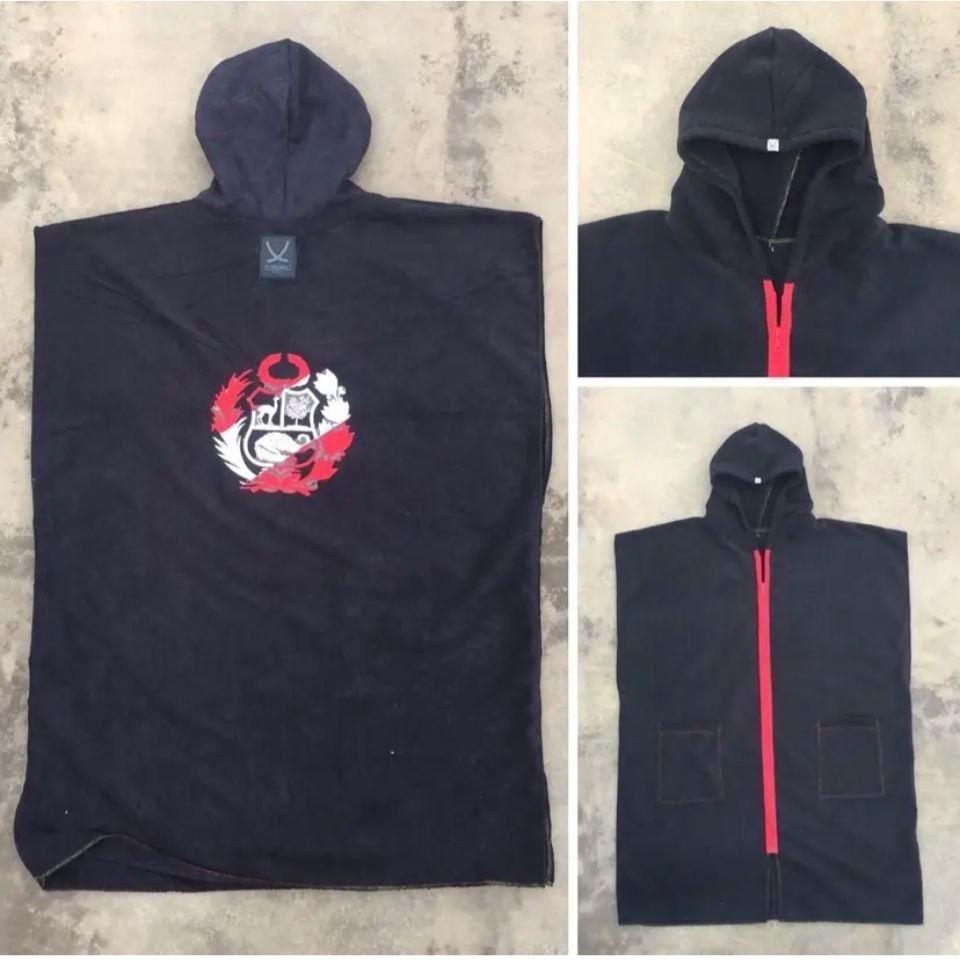 Cambiador de microfibra diseño ESCUDO en ESPALDA con CIERRE DELANTERO, en capucha y bolsillos frontales. Diseñado para ofrecer secado rápido y comodidad, es ideal para playa, piscina o actividades al aire libre. Salida de baño. Unisex. Ligero, práctico y fácil de transportar, combina funcionalidad y estilo para acompañarte en todas tus aventuras.