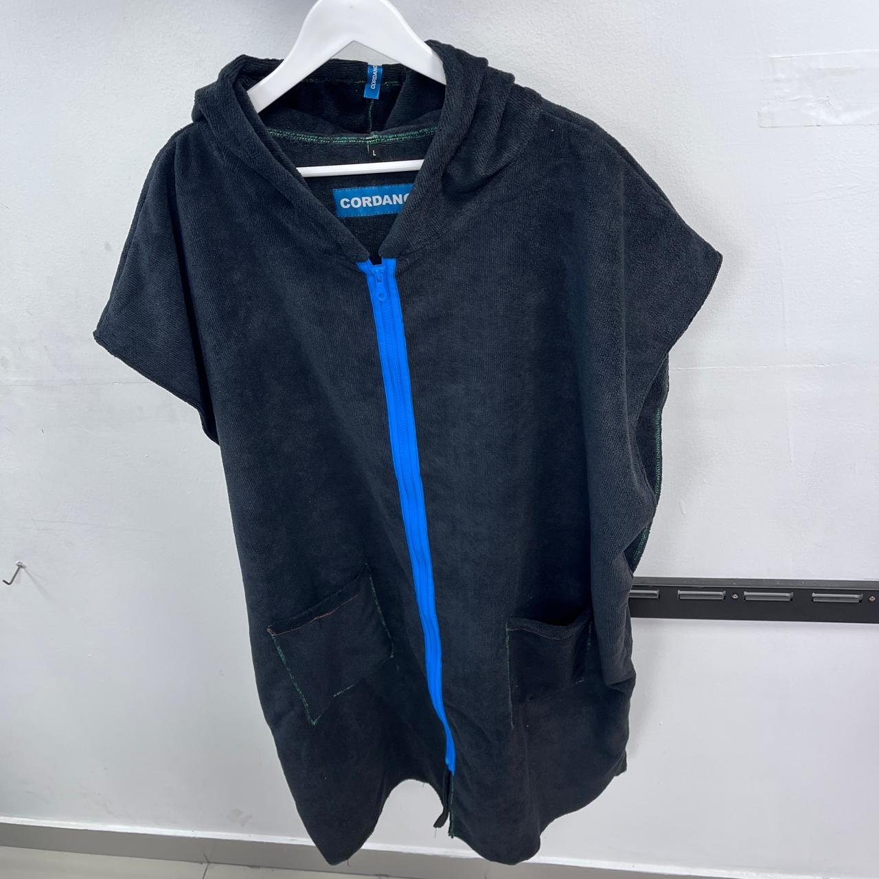 Microfibra absorbente, reemplaza la toalla, seca al contacto con el cuerpo y abrigan. Color NEGRO CON CIERRE. Secan con seguridad. Como salida de baño (Bata), nado en piscina, academias, rehab, surf, deportes en el mar, etc. Cambiador CORDANO. Talla ML tiene 1.10 cm largo desde hombros. Largos amplios. Para adultos de 1.60 a 1.85. Son Unisex. Marca Peruana.