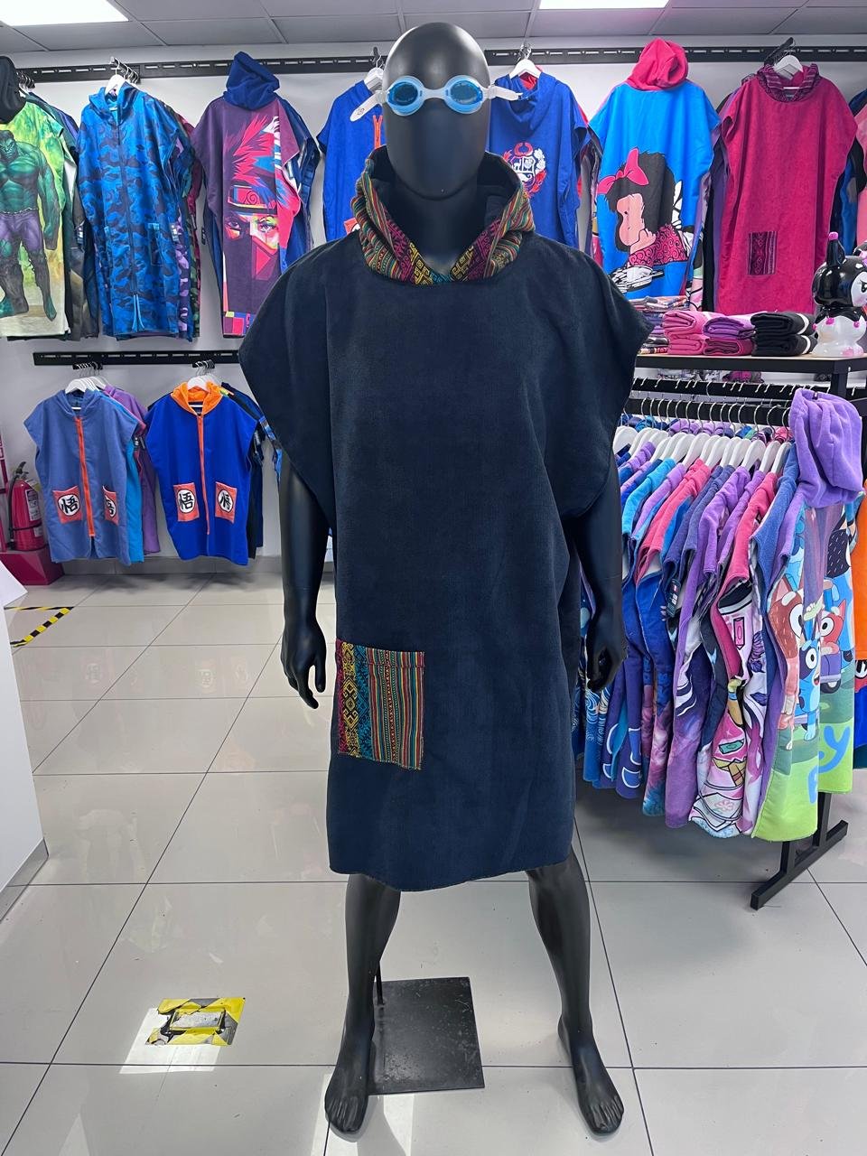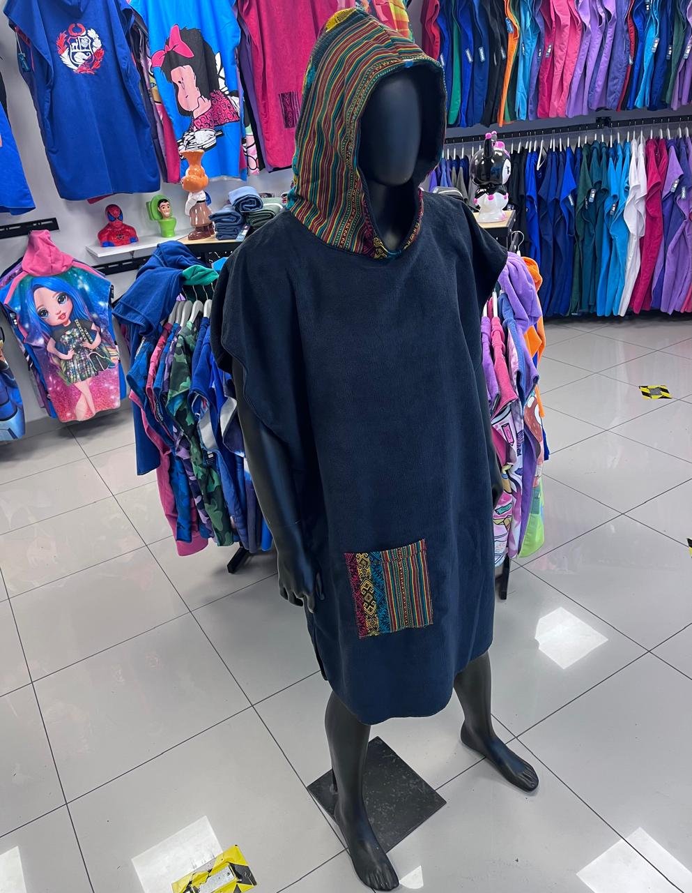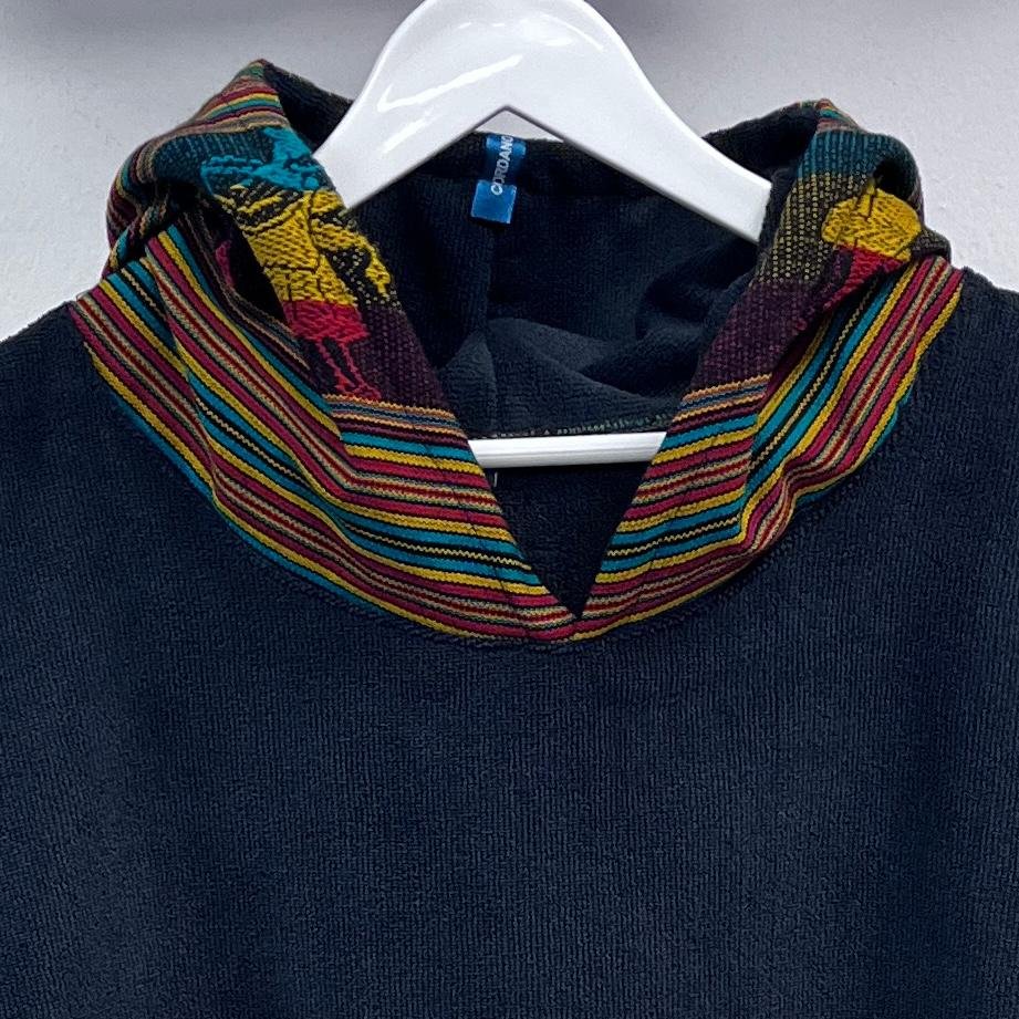 Cambiador de microfibra diseño INCAICO NEGRO, en capucha y bolsillo frontal. Diseñado para ofrecer secado rápido y comodidad, es ideal para playa, piscina o actividades al aire libre. Salida de baño. Unisex. Ligero, práctico y fácil de transportar, combina funcionalidad y estilo para acompañarte en todas tus aventuras.