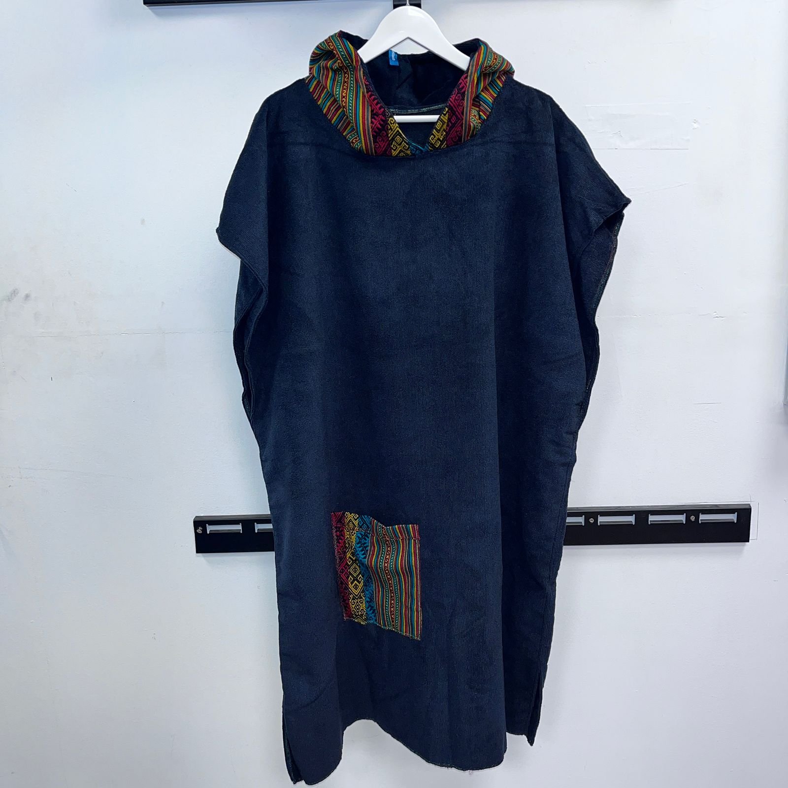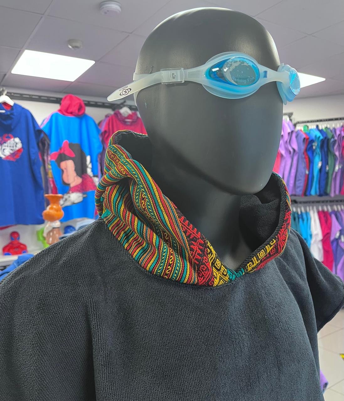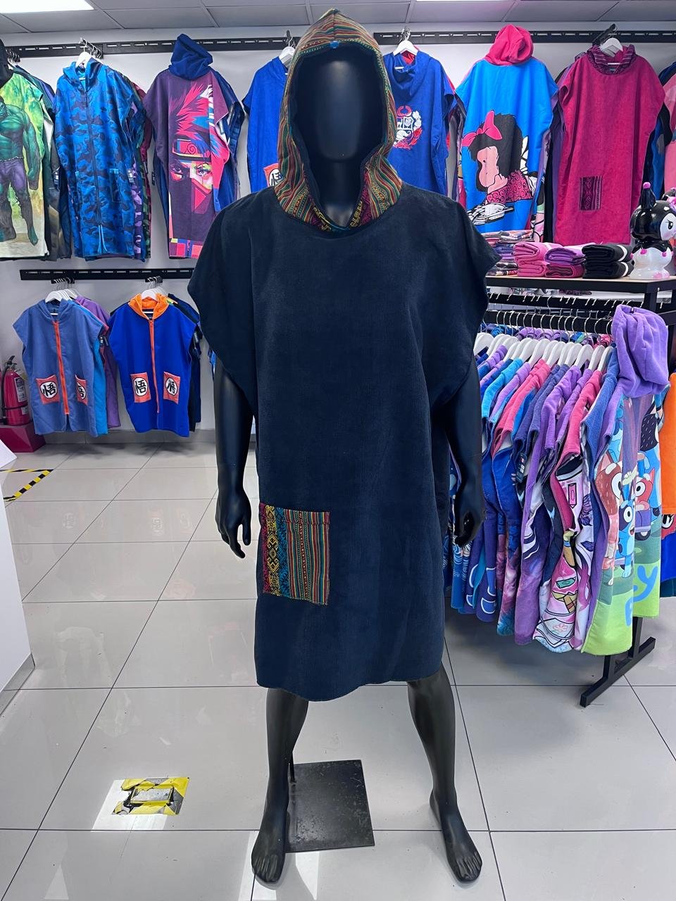Cambiador de microfibra diseño INCAICO NEGRO, en capucha y bolsillo frontal. Diseñado para ofrecer secado rápido y comodidad, es ideal para playa, piscina o actividades al aire libre. Salida de baño. Unisex. Ligero, práctico y fácil de transportar, combina funcionalidad y estilo para acompañarte en todas tus aventuras.