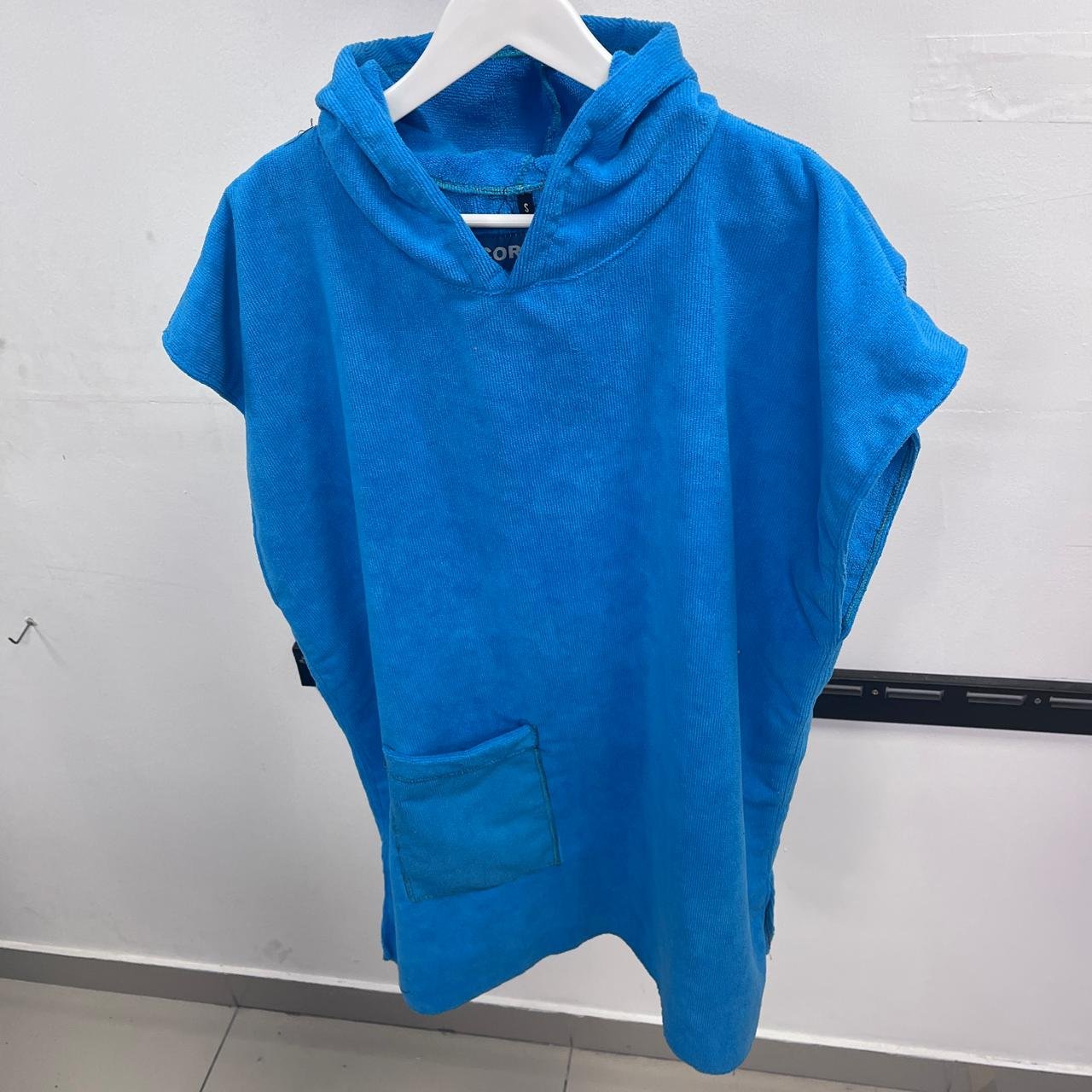 Microfibra absorbente, reemplaza la toalla, seca al contacto con el cuerpo y abrigan. Color TURQUESA ENTERO. Con seguridad secan. Como salida de baño (Bata), nado en piscina, academias, rehab, surf, deportes en el mar, etc. Cambiador CORDANO. Talla S tiene 90 cm largo desde hombros. Para niños de 9 a 11 años, que no pasen el 1.50 de estatura. De pasar, les recomendamos la siguiente talla ML. Son Unisex. Marca Peruana.