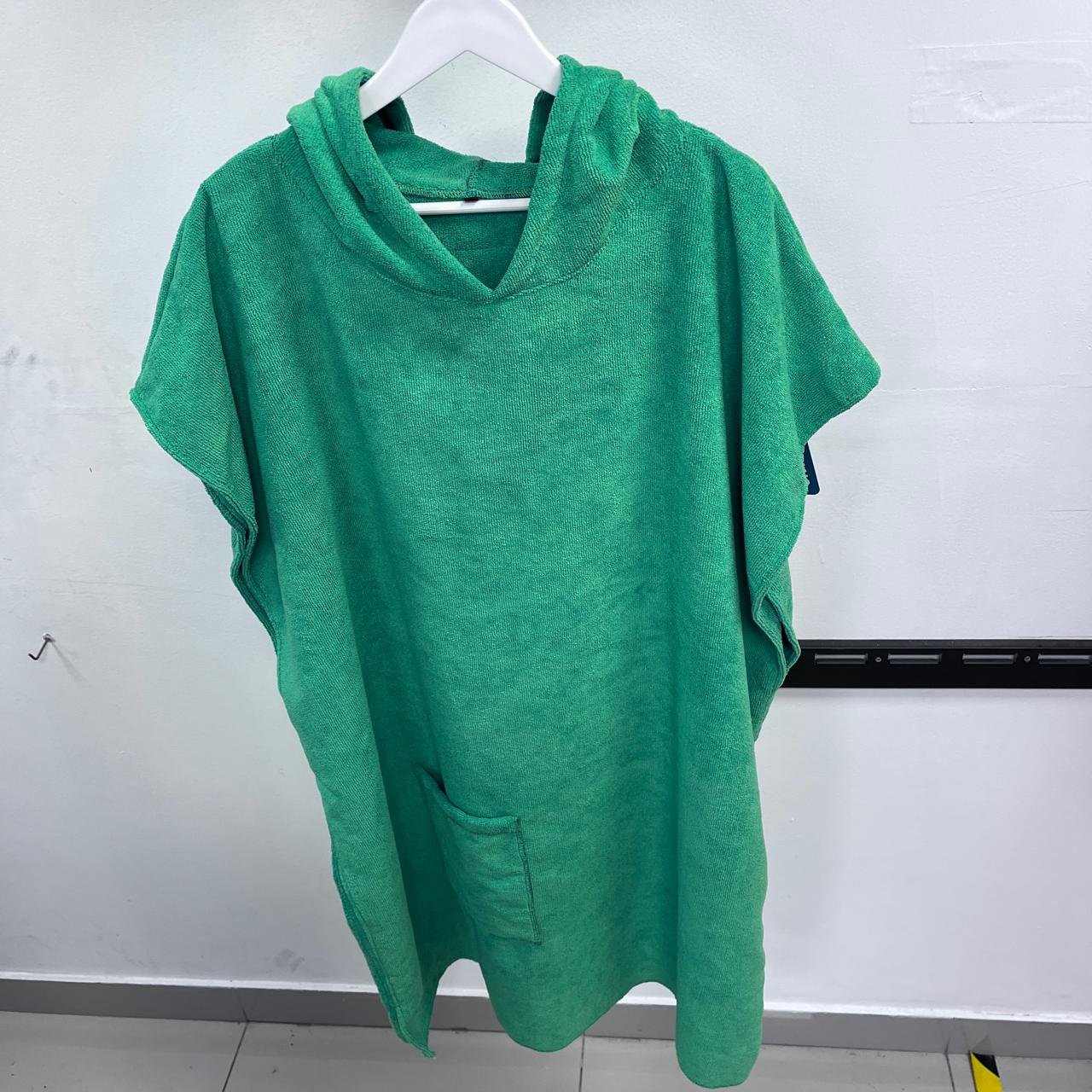 Microfibra absorbente, reemplaza la toalla, seca al contacto con el cuerpo y abrigan. Color VERDE PERICO. Secan con seguridad. Como salida de baño (Bata), nado en piscina, academias, rehab, surf, deportes en el mar, etc. Cambiador CORDANO. Talla ML tiene 1.10 cm largo desde hombros. Largos amplios. Para adultos de 1.60 a 1.85. Son Unisex. Marca Peruana.